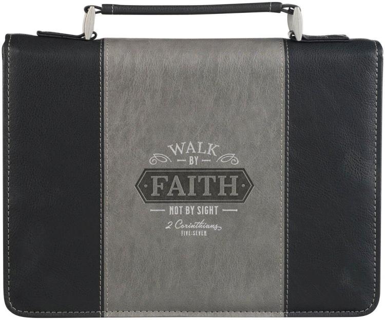 The Walk by Faith Black and Gray Faux Leather Classic Bible Cover will protect any Bible and look good in the hands of your family patriarch~ whose bold faith has guided the generations of your family.