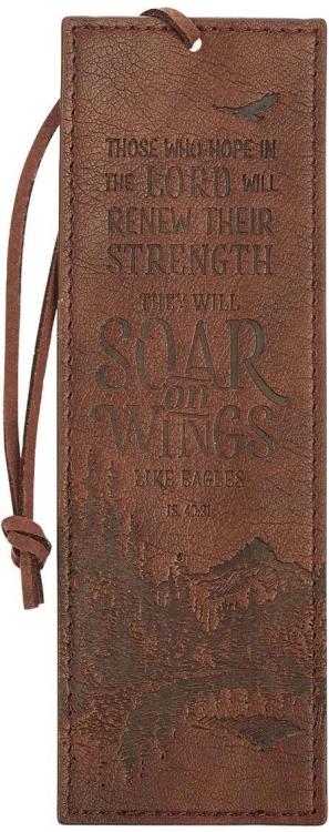 Faux Leather Bookmark Soar On Wings Isaiah 40:31 Bible Verse, Brown