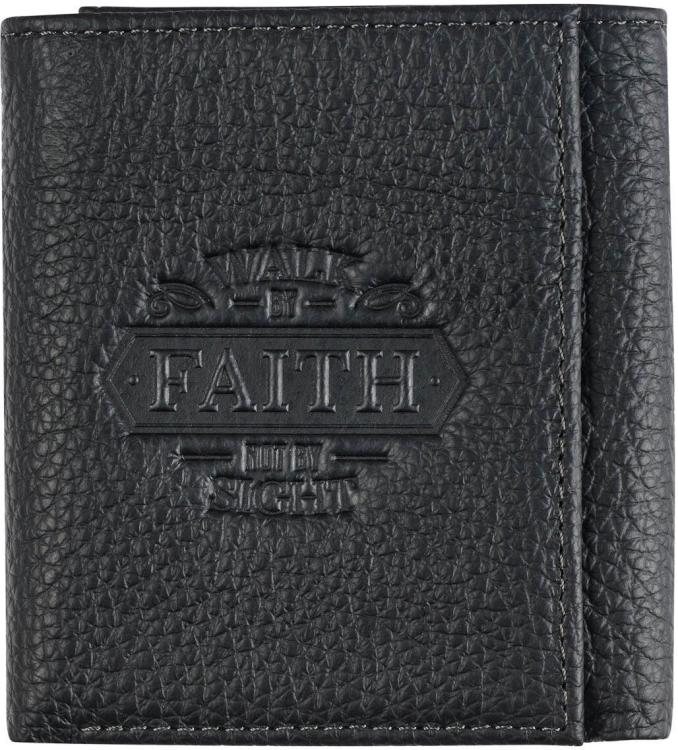 Encourage your husband every time he pulls out his Walk by Faith Black Genuine Leather Wallet to stay faithful to the teaching of Scripture.