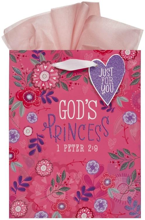 Part of the God’s Princess Pink and Purple Foral Collection, the Chosen Loved Beautiful Pink Medium Gift Bag coordinates wonderfully with the coordinating items that include a stainless steel water bottle, a fashion Bible case, and a secret diary.