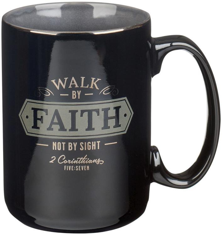 Give the Walk By Faith Black Ceramic Coffee Mug to your family patriarch as recognition for his bold faith and his confident guidance of the family. He will be delighted to fill it to the brim with warm steamy coffee before his prayer time.